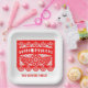 These Christmas plates feature a red papel picado Mexican banner with the phrase Feliz Navidad on the front in bright white. Below the banner is a place to add a name.