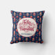 This fabulous Christmas folk art 16" x 16" blue pillow with a pattern of santas, reindeer, presents and stars that says Merry Christmas in Spanish "Feliz Navidad" and has your last name would look awesome on your couch, bed or chairs! It's so festive and will go with any Christmas decor - it's rustic yet retro and modern yet traditional! It'll look fantastic and add that little extra Christmas touch to your home!