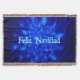 A swarm of blue fractal snowflakes. Spanish text reading "Feliz Navidad" appears in glowing blue and white.