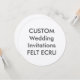 Plain white envelopes are included with paper invitations and will come to fit the invitation size you select. If you don’t need the envelopes, you may choose to not receive them by selecting the dropdown below "Envelopes" and choosing "None." If you’d like to have a design on your envelopes, you can browse all of these available envelopes to find the design that complements your Felt Ecru 110lb 5 25 Round Wedding Invitations.