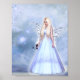 This design features a beautiful blue dressed angel on a soft blue clouds and stars themed backdrop she is holding a beautiful blue rose.