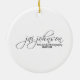 Lightweight, smooth, pure white ornament with nice sheen. Perfect size to be seen from across the room ... and to attract closer inspection! Price was great for ordering enough for the whole family! Clear, bold black design just as requested. Matches the order exactly. Just so nice!