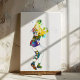 Very impressive product! The canvas is sturdily made. It features a saw tooth hanger on the back, making it easy to "try out" the canvas in several rooms until I found the best location. It attracts good comments from my friends. I love it! The printing is wonderful! Colors are as bright and crisp as they appeared on the website.