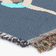 A quality printed throw has its advantages. This is a much finer weave throw than its loopier cousins, and though lighter, it is worth the investment for custom room accessorizing. The back is much prettier than the typical brown, and the fringe on the long sides very vivid, the selvage nicely done. Before photographing, I washed the throw in cold water, delicate, with a thicker woven throw the same size. On tumble dry low, this throw was dry in half the time as the other. This is a very practical quality if you use throws for furniture covers or to wrap up in frequently. The sleekness of the fabric makes it a great layer for accenting or protecting without the feeling of sitting on too much stuff. Perfect for napping or when you feel a light chill coming on. The color printing is beautiful and on this fabric, matched the design and color of my Photoshop image. This is an advantage for blending room fabrics and colors. The fringe on the short sides prints the colors from the design image and therefore varies from the side fringe. I streaked a white fractal line through the plaid pattern to give the illusion of weaving. This printed as crisp as an illusory thread, and put some white in the short side fringe, showing another advantage of print vs loomed- for artistic purposes, line lines, detail, and color integrity can be planned and preserved. My loomed throws have color limitations and more of a needlepoint texture. Print throws reproduce an exact image. The throw felt a little stiff straight out of the package, but this went away in the first delicate wash. Of course I searched the wash water for ink or bleeding and there was none.