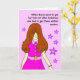 Funny cartoon of a woman with long hair wearing a pink dress surrounded by flowers. Message says 'When Name went to get her hair cut after lockdown she had to get three written quotes'. Easily personalise this card by editing the template text. Message inside says 'Happy Birthday' but you could change this. If you would like me to produce this card with a different hair colour, send me a message! Thanks for viewing my cartoons (and thanks even more if you buy this card!!)