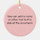Lightweight, smooth, pure white ornament with nice sheen. Perfect size to be seen from across the room ... and to attract closer inspection! Price was great for ordering enough for the whole family! Clear, bold black design just as requested. Matches the order exactly. Just so nice!