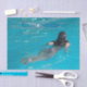 Black-haired female model swimming in a beautiful, blue sea to customize, personalize by changing to your name