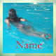 Black-haired female model swimming in a beautiful, blue sea to customize, personalize by changing to your name
