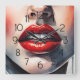 Female Mouth with Red Lips Square Wall Clock