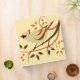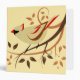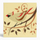 Bird art of a female Northern cardinal perched on stylized branches surround by leaves in fall colors
