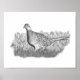 Black and white illustration of female pheasant by Yuichi Tanabe
