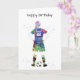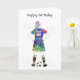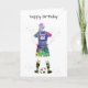 Greeting card featuring a dynamic watercolor illustration of a female soccer player. Ideal for congratulating athletes, celebrating victories, or inspiring motivation.
