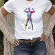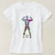 Colorful watercolor silhouette of a female soccer player printed on a t-shirt. The dynamic and artistic design captures the strength and movement of the sport, making it perfect for players and fans alike.