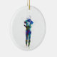 Artistic watercolor depiction of a female softball player printed on a ceramic ornament. A vibrant and modern design perfect for sports fans and athletes, adding energy and style to any decoration.