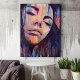 Let your walls down and feel the flood of peace surround you with this contemporary street-style artwork. This mixed media acrylic painting art print features a colorful and stunning abstract realism portrait of a woman in deep contemplation, drowning out the chaos of the world -featuring bright hues of purples, peach, blues and pinks. Originally painted on stretched canvas with archival acrylics and inks.