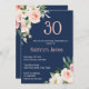 Feminine Navy & Peach Floral Womens Birthday Invitation