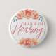 Your mother will love this elegant hard-of-hearing badge by JessicaAmber. This button features the slogan 'Hard of Hearing' in elegant script, surrounded by a floral border of peach colored wild roses. You can edit the text as needed. A great gift for mother's day. 🌹 For more deafness pins, visit my store: Zazzle.com/Elder_Vitality 🌹 For custom orders, message me on Zazzle