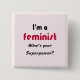 "I'm a feminist, What's your Superpower?" A fun slogan with serious intent. The text is in bold black lettering on a pale pink background, with 'feminist' in deep pink for contrast.