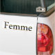 Bumper sticker says Femme in black text outlined in rainbow colors. Looks great on cars, in the house or anywhere else you want to display it.