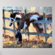 Digital painting of a photo by V.L. Himmelberger of horses and a goat meeting by a fence.
