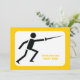Fencer black silhouette fencing custom invitation featuring a minimalist pictogram icon of a black silhouette of a fencer holding his sword and your text on white background with yellow border.