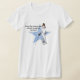 My overall review is that the T-shirt is nice, it fits true to size however the font is significantly smaller than advertised and you can't read it. The printing is unreadable and there is a strain to read it. It does not look like the advertised product. Maybe the shirt color is darker or a larger more visible font should have been used. Photos with and without flash and font is barely legible.