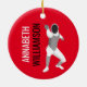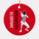 Lightweight, smooth, pure white ornament with nice sheen. Perfect size to be seen from across the room ... and to attract closer inspection! Price was great for ordering enough for the whole family! Clear, bold black design just as requested. Matches the order exactly. Just so nice!