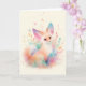 This enchanting fennec fox greeting card features the adorable desert fox surrounded by a whimsical blend of soft, pastel colors and vibrant flowers. The fox's big ears and bright eyes give it a playful, sweet expression, while the artistic watercolor background adds a touch of magic. With delicate sprigs of flowers and a dreamy atmosphere, this card captures the charm of nature and the allure of the desert. Perfect for animal lovers, this delightful fennec fox card makes a wonderful gift or greeting for any occasion.
