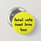 button with "feral cats need love too!" slogan on it.