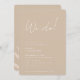 "We do!" minimalist, beach-inspired wedding invitation with soft beige and pink tones. Wedding details on the front and a fern frond silhouette on the back. Personalize the text or add/edit features using the edit tool. Related items may be found in the "Fern & Beach Wedding Collection."
