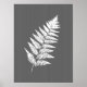 Fern Frond, White on Charcoal Gray / Grey Poster