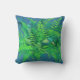 Fern leaves, pteridophyte, floral art blue & green throw pillow