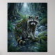 Fern Raccoon Forest Mischief Poster