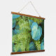 Decorate your living space with this horizontal, hanging wall tapestry with wooden tops that features a photo image of green ferns and variegated Hosta plants.
