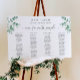 This seating chart poster features a watercolour foliage design and 4 tables layout. The script text heading is an image that cannot be edited. The heading image can be resized to fit any poster size. All of the other text is fully editable. For more advanced customization of this design, simply select the "Customize It" button above.