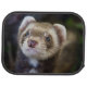 A close up picture of a ferret outdoors with blurry nature background. Nature photography.