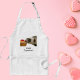 The apron is of very good quality. I used it while icing cookies. The dark colored icing washed off of the apron very well! The neck strap is sturdy and easy to resize on the adult size apron. The print was clear and well defined. I am glad I was able to personalize with name.