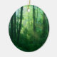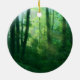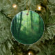 Rays of the morning sun streaming into a brilliantly green summer forest, with massive ivy-covered trees and a thick blanket of underbrush. A photograph digitally manipulated to give the over-grown vines, blue-green mist, golden god-rays, and spring green tree leaves a dream-like quality.