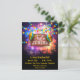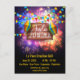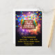 Festa Junina postcard with flags, fireworks, and colorful paper balloon decorations.