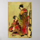 Two women entertainers (geishas) getting dressed for a festival; tall paper lantern in the foreground on the right. Seiro niwaka onnageisha no bu, popular female performers of the green houses. From an original 18th century Japanese woodcut, Omando ogie oiyo takeji (1785), by Kitagawa Utamaro. All Rights Reserved © 2011 padre art