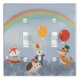 Festive animals with with fawns, rabbits, hedgehogs, foxes. Some wear hats, others let balloons fly.