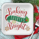 These festive holiday paper plates features the phrase "Baking Spirits Bright" in Christmas red, green and gold colors. Design includes a santa hat, holly with berries, Christmas cookies and starburst accents.