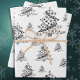 Festive Black and White Christmas Tree Holiday Wrapping Paper Sheets.