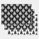 Festive black and white Christmas tree pattern wrapping paper sheets, perfect for holiday gift wrapping.