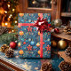 Festive Blue Christmas Ornaments & Foliage Pattern Wrapping Paper