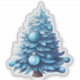 A vibrant blue Christmas tree stands tall, decorated with shiny blue ornaments and delicate golden accents.