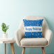 Festive Blue Snowflake Pattern Happy Holidays Throw Pillow