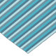 A festive table runner with a stripe pattern made of blue hues . Prefect for everyday or for the Holidays like Christmas or Hanukkah .