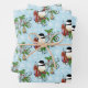Festive Blue Vintage Christmas Chickadee Wrapping Paper Sheets