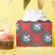 Festive Blue, White Soccer Ball Pattern on Red Wrapping Paper